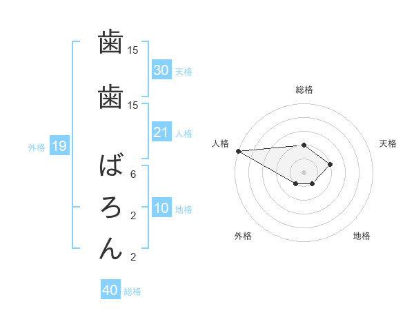 歯歯 ばろんさんを姓名の画数から五運を鑑定