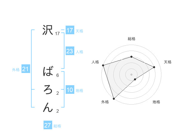 沢 ばろんさんを姓名の画数から五運を鑑定