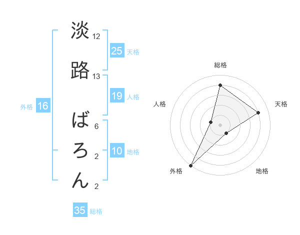 淡路 ばろんさんを姓名の画数から五運を鑑定