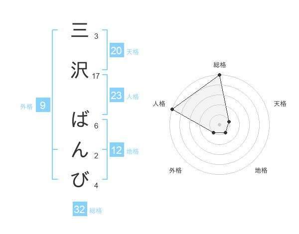三沢 ばんびさんを姓名の画数から五運を鑑定
