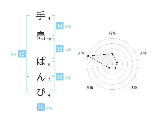 手島 ばんびさんの総格は26画の2点!