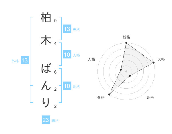柏木 ばんりさんの天格は13画の5点!