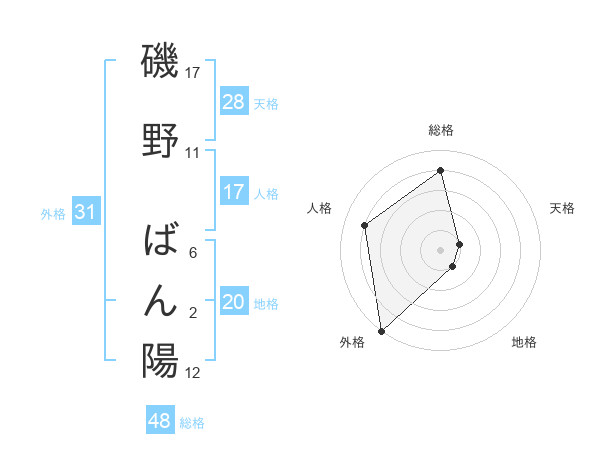 磯野 ばん陽さんを姓名の画数から五運を鑑定