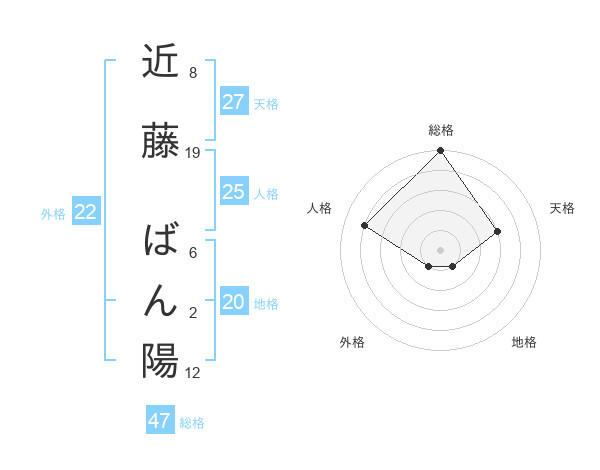 近藤 ばん陽さんを姓名の画数から五運を鑑定