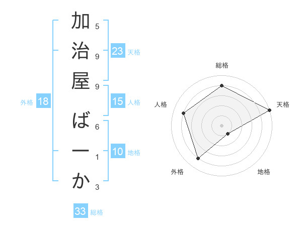 加治屋 ばーかさんを姓名の画数から五運を鑑定