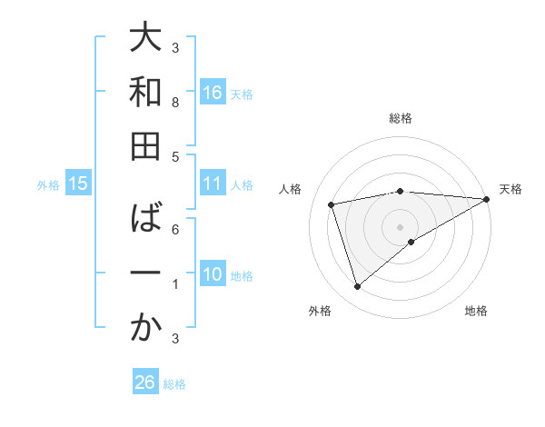 大和田 ばーかさんを姓名の画数から五運を鑑定