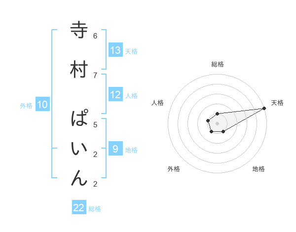 寺村 ぱいんさんを姓名の画数から五運を鑑定