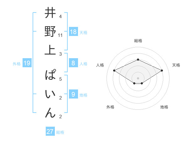 井野上 ぱいんさんを姓名の画数から五運を鑑定