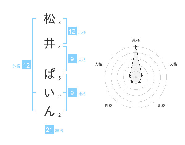 松井 ぱいんさんの総格は21画の5点