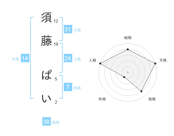 須藤 ぱいさんを姓名の画数から五運を鑑定