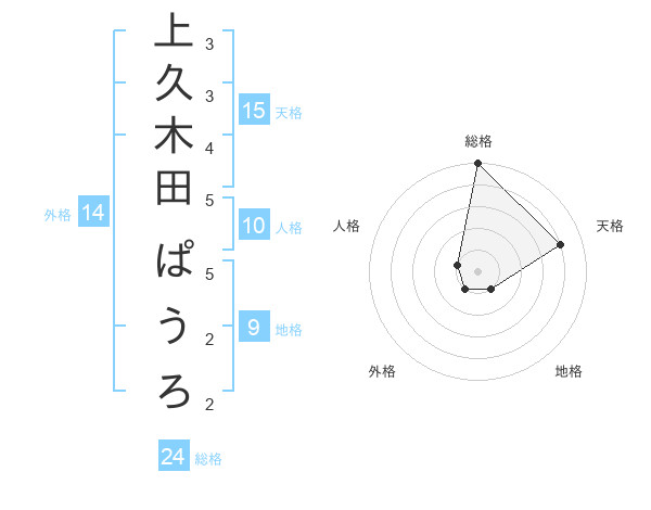 上久木田 ぱうろさんを姓名の画数から五運を鑑定