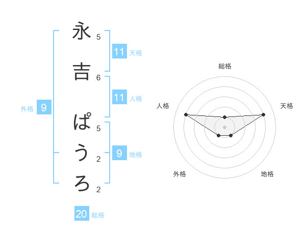 永吉 ぱうろさんの総格は20画の1点!