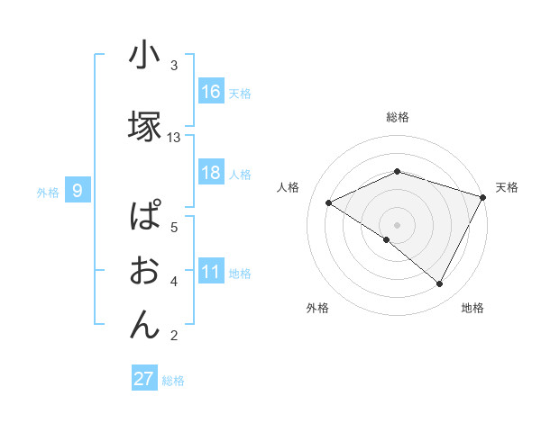 小塚 ぱおんさんを姓名の画数から五運を鑑定