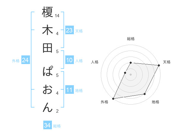 榎木田 ぱおんさんの天格は23画の5点!