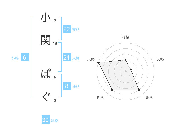 小関 ぱぐさんの総格は30画の2点!