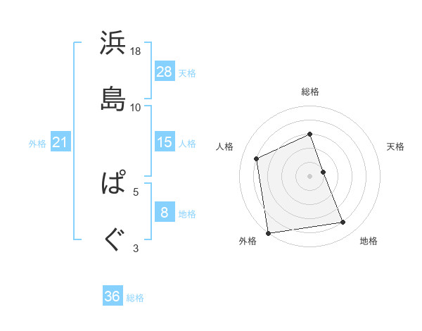 浜島 ぱぐさんを姓名の画数から五運を鑑定