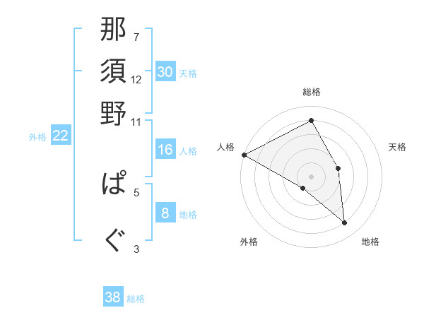 那須野 ぱぐさんの総格は38画の4点!