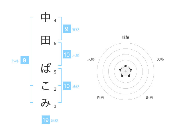 中田 ぱこみさんの地格は10画の1点!