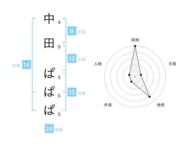中田 ぱぱぱさんの総格は24画の5点