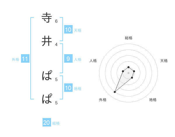 寺井 ぱぱさんの総格は20画の1点!