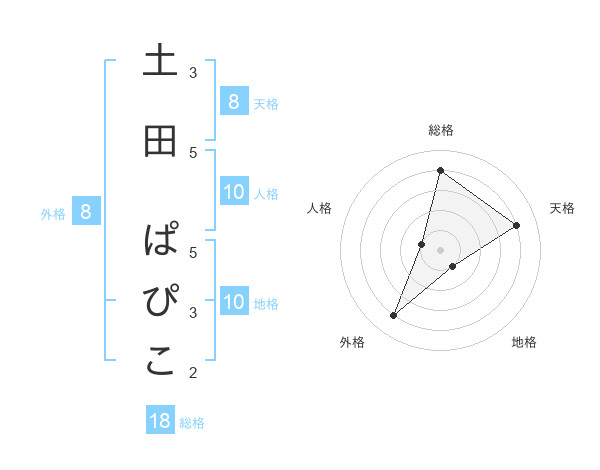 土田 ぱぴこさんを姓名の画数から五運を鑑定