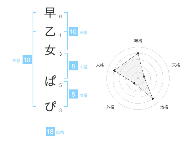 早乙女 ぱぴさんの天格は10画の1点!