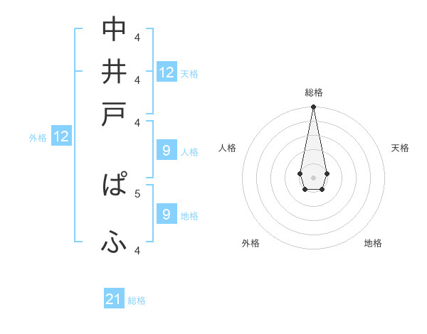 中井戸 ぱふさんを姓名の画数から五運を鑑定