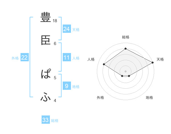 豊臣 ぱふさんを姓名の画数から五運を鑑定