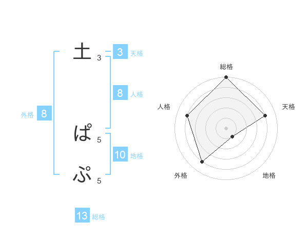 土 ぱぷさんの総格は13画の5点!
