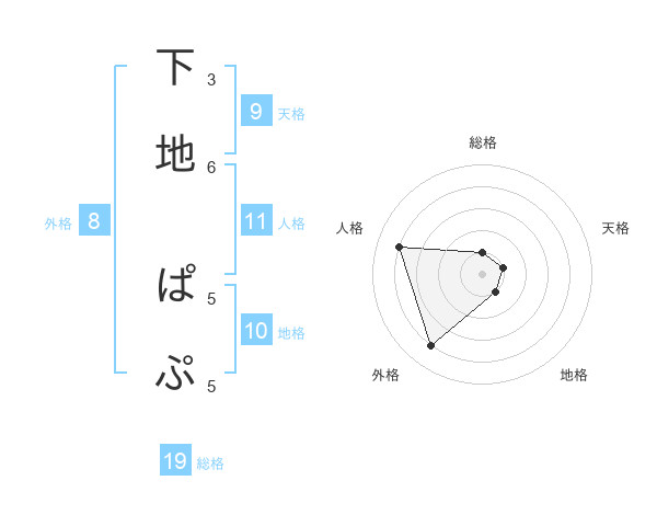 下地 ぱぷさんを姓名の画数から五運を鑑定