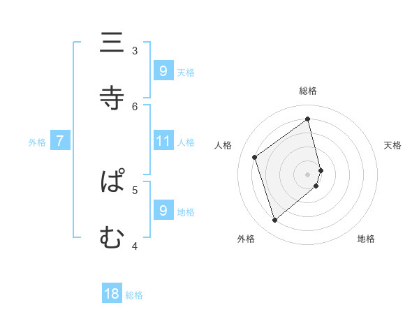 三寺 ぱむさんの天格は9画の1点!