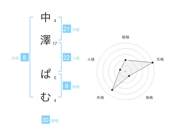 中澤 ぱむさんを姓名の画数から五運を鑑定