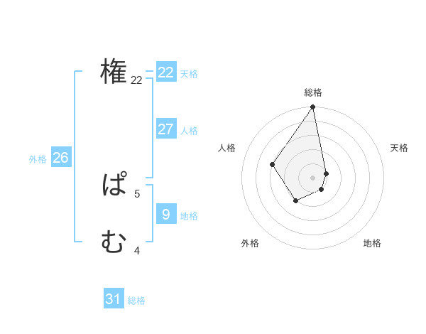権 ぱむさんの総格は31画の5点!