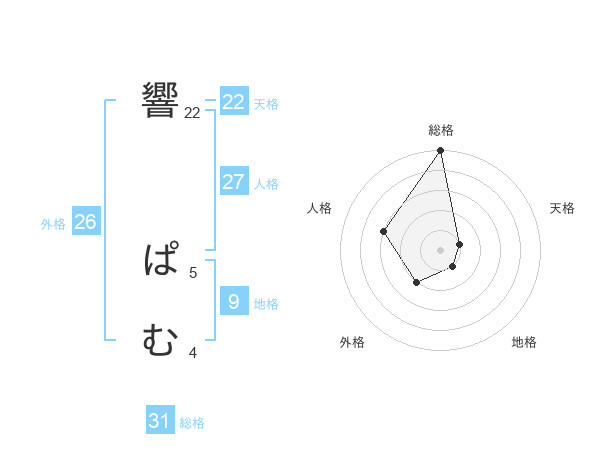 響 ぱむさんの総格は31画の5点!