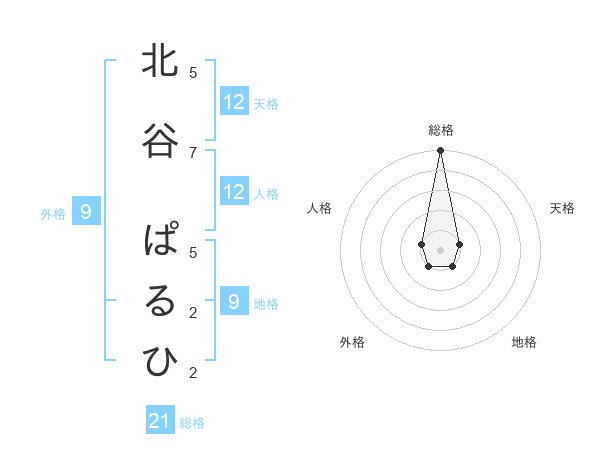 北谷 ぱるひさんを姓名の画数から五運を鑑定