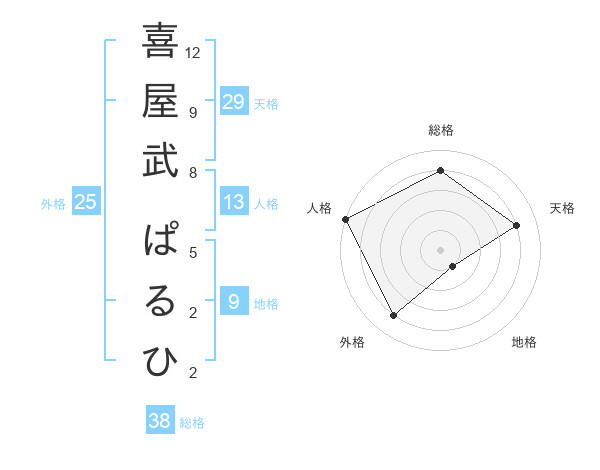 喜屋武 ぱるひさんの総格は38画の4点!