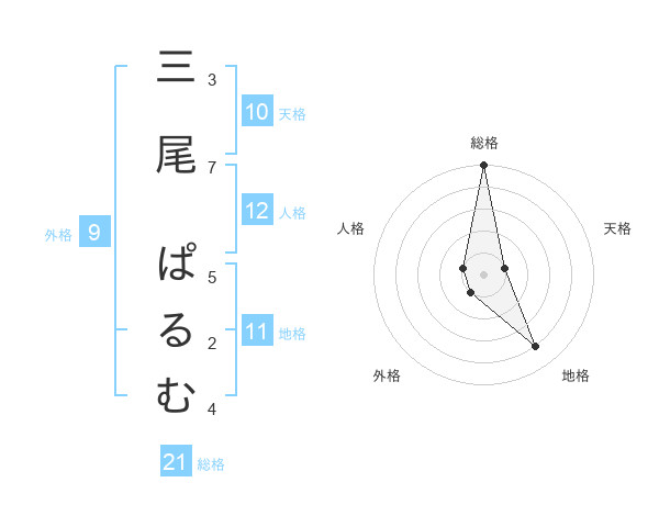 三尾 ぱるむさんを姓名の画数から五運を鑑定