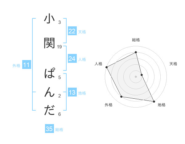 小関 ぱんださんを姓名の画数から五運を鑑定