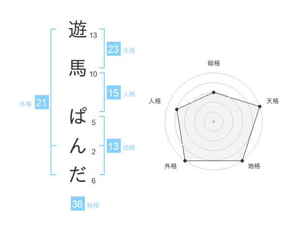 遊馬 ぱんださんの天格は23画の5点!