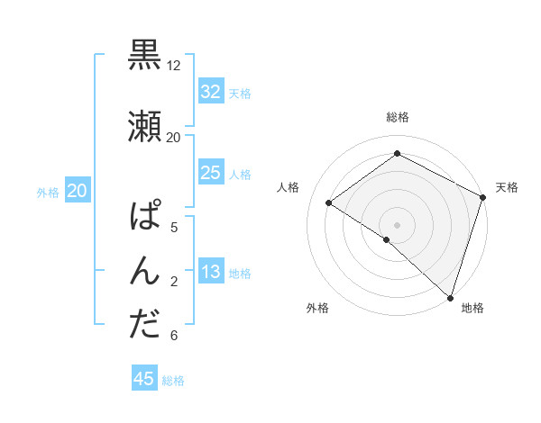 黒瀬 ぱんださんを姓名の画数から五運を鑑定