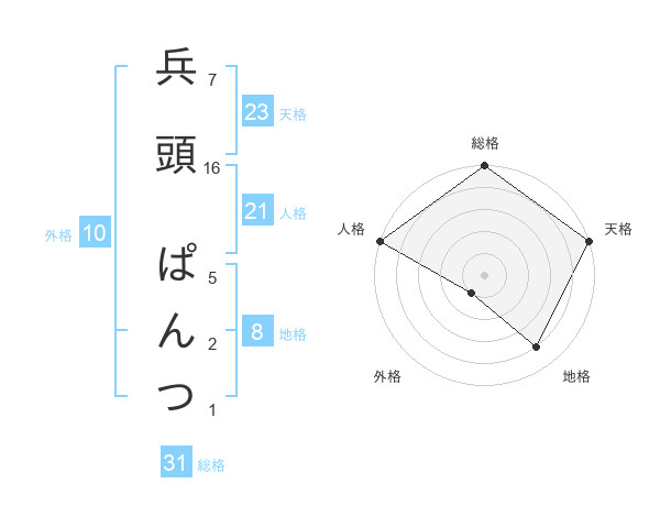 兵頭 ぱんつさんの総格は31画の5点!