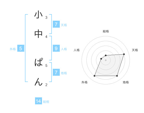 小中 ぱんさんの総格は14画の1点!
