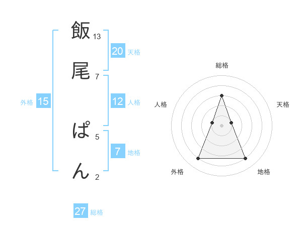 飯尾 ぱんさんを姓名の画数から五運を鑑定