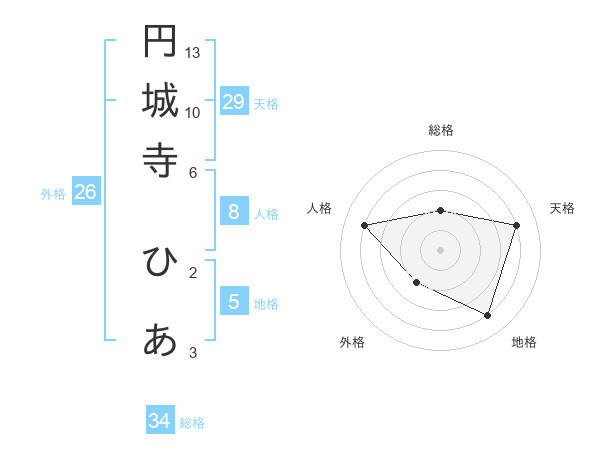 円城寺 ひあさんの天格は29画の4点!