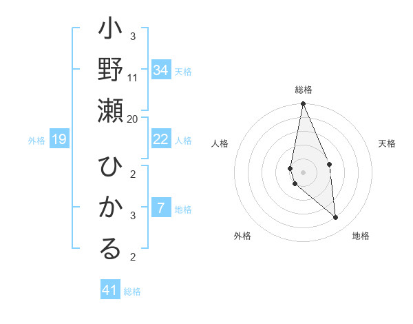 小野瀬 ひかるさんを姓名の画数から五運を鑑定
