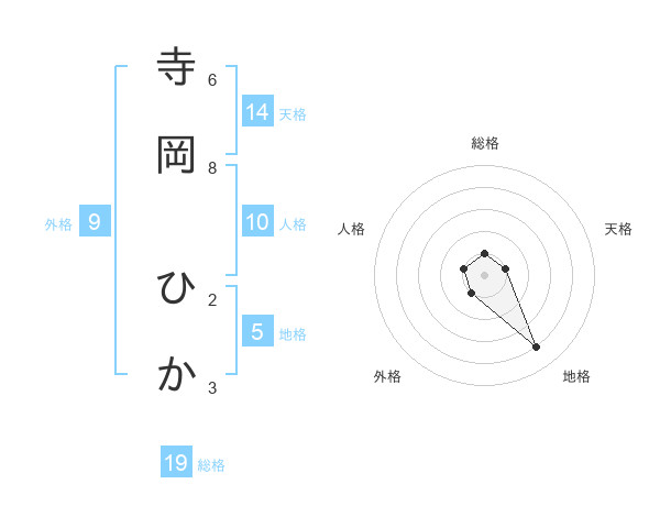 寺岡 ひかさんを姓名の画数から五運を鑑定