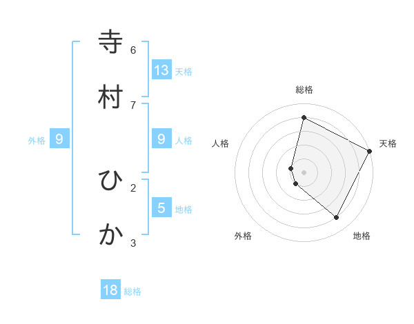 寺村 ひかさんの天格は13画の5点!