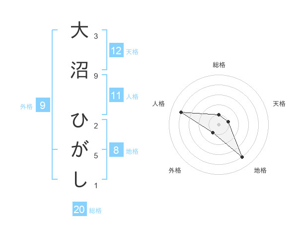 大沼 ひがしさんを姓名の画数から五運を鑑定