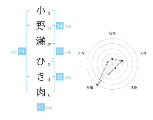 小野瀬 ひき肉さんを姓名の画数から五運を鑑定