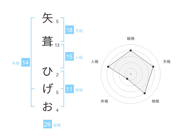 矢葺 ひげおさんを姓名の画数から五運を鑑定